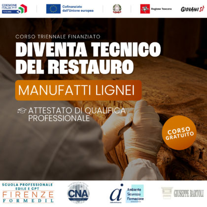 FORMEDIL FIRENZE SCUOLA PROFESSIONALE EDILE E CPT DI FIRENZE (accreditamento regionale OF0189) capofila di A.T.I con CNA FORMAZIONE S.R.L. UNIPERSONALE SERVIZI SPECIALI PER L’AZIENDA (n. cod. accr. OF0141), AMBIENTE IMPRESA scrl (n. cod. accr. OF0211) e impresa Giuseppe Bartoli S.r.l in attuazione dell’Avviso pubblico per la concessione di finanziamenti ex art. 17 comma 1 lett. a) della L.R. 32/2002 per percorsi formativi di “Tecnico del restauro di beni culturali”, approvato con D.D. n. 18607 del 30/07/2025, a valere sul PR FSE+ Toscana 2021-2027, a seguito dell’ammissione a finanziamento, con D.D. n. 2553 del 06.02.26 pubblicato sul BURT n. 7 del 18 febbraio 2026, del progetto acronimo RESINE titolo “Tecnico del Restauro di Beni Culturali (tecnico esperto) –